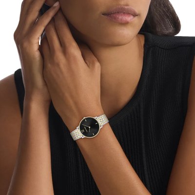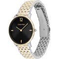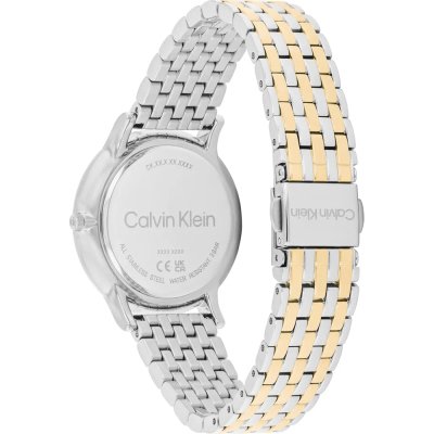 Diese Calvin Klein Uhr hat ein Edelstahl Gehäuse mit einem Durchmesser von 34 mm und ist mit einem Armband aus Edelstahl versehen. In der Uhr arbeitet ein Seiko Instruments Inc. Uhrwerk. Das Glas der Uhr besteht aus Mineral - Glas.