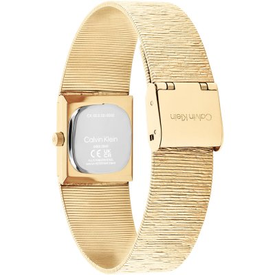 Diese Calvin Klein Uhr hat ein Edelstahl Gehäuse mit einem Durchmesser von 20 mm und ist mit einem Armband aus Edelstahl versehen. In der Uhr arbeitet ein Seiko Uhrwerk. Das Glas der Uhr besteht aus Mineral - Glas.