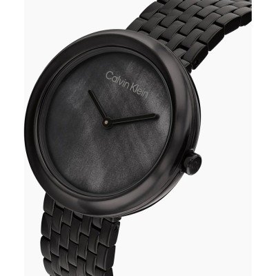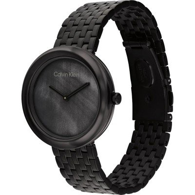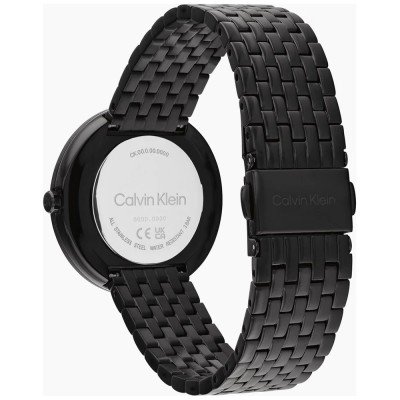 Diese Calvin Klein Uhr hat ein Edelstahl Gehäuse mit einem Durchmesser von 34 mm und ist mit einem Armband aus Metall versehen. In der Uhr arbeitet ein Seiko Instruments Inc. Uhrwerk. Das Glas der Uhr besteht aus Mineral - Glas.