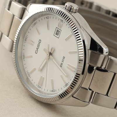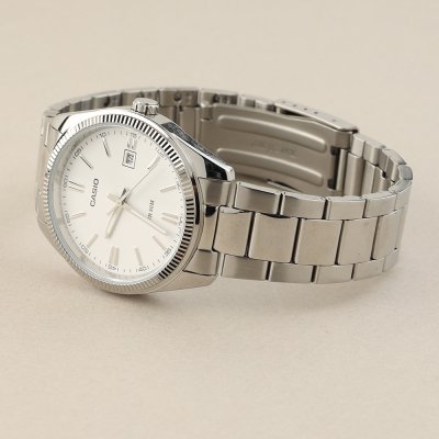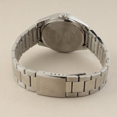 Diese Casio Uhr hat ein Metalllegierung Gehäuse mit einem Durchmesser von 38.5 mm und ist mit einem Armband aus Edelstahl versehen. In der Uhr arbeitet ein Casio Uhrwerk. Das Glas der Uhr besteht aus Mineral - Glas.