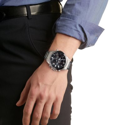 Diese Casio Edifice Uhr hat ein Edelstahl Gehäuse mit einem Durchmesser von 46 mm und ist mit einem Armband aus Metall versehen. In der Uhr arbeitet ein Casio Uhrwerk. Das Glas der Uhr besteht aus Mineral - Glas.