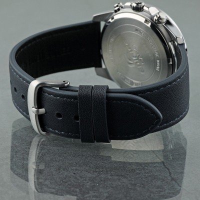 Diese Casio Edifice Uhr hat ein Edelstahl Gehäuse mit einem Durchmesser von 43.8 mm und ist mit einem Armband aus Leder versehen. In der Uhr arbeitet ein Casio Uhrwerk. Das Glas der Uhr besteht aus Mineral - Glas.