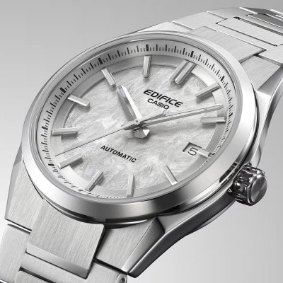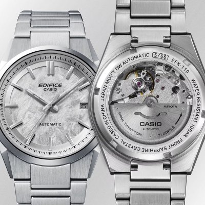 Diese Casio Edifice Uhr hat ein Edelstahl Gehäuse mit einem Durchmesser von 38 mm und ist mit einem Armband aus Edelstahl versehen. In der Uhr arbeitet ein Casio Uhrwerk. Das Glas der Uhr besteht aus Sapphir - Glas.