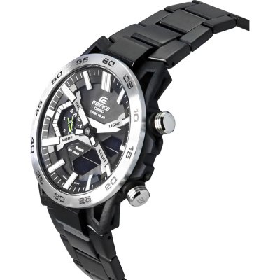 Diese Casio Edifice Uhr hat ein Karbonverstärktes Kunstharz Gehäuse mit einem Durchmesser von 48 mm und ist mit einem Armband aus Edelstahl versehen. In der Uhr arbeitet ein Casio Uhrwerk. Das Glas der Uhr besteht aus Mineral - Glas.