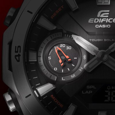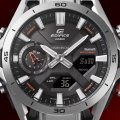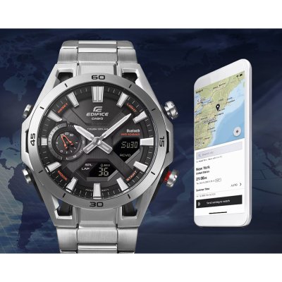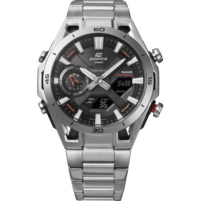 Diese Casio Edifice Uhr hat ein Edelstahl und Karbon Gehäuse mit einem Durchmesser von 45.8 mm und ist mit einem Armband aus Edelstahl versehen. In der Uhr arbeitet ein Casio Uhrwerk. Das Glas der Uhr besteht aus Mineral - Glas.