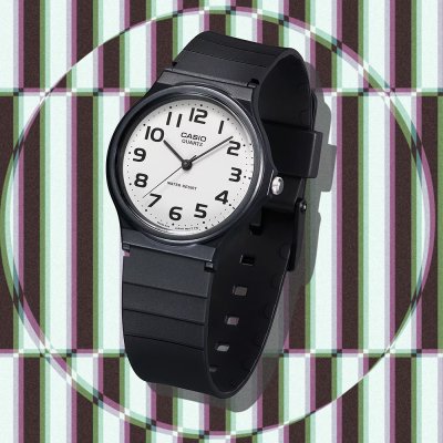 Diese Casio Uhr hat ein Kunstharz Gehäuse mit einem Durchmesser von 34.9 mm und ist mit einem Armband aus Kunstharz versehen. In der Uhr arbeitet ein Ronda Uhrwerk. Das Glas der Uhr besteht aus Acryl - Glas.
