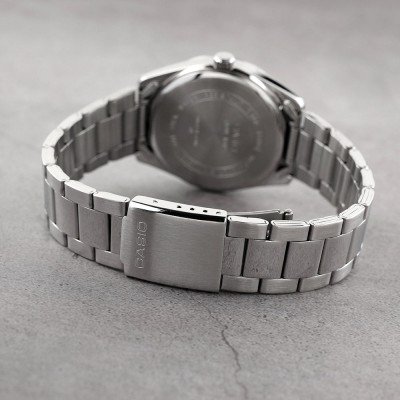 Diese Casio Uhr hat ein Metalllegierung Gehäuse mit einem Durchmesser von 38.5 mm und ist mit einem Armband aus Edelstahl versehen. In der Uhr arbeitet ein Casio Uhrwerk. Das Glas der Uhr besteht aus Mineral - Glas.