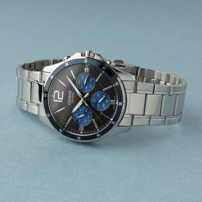 Diese Casio Uhr hat ein Metalllegierung Gehäuse mit einem Durchmesser von 43.6 mm und ist mit einem Armband aus Metall versehen. In der Uhr arbeitet ein Casio Uhrwerk. Das Glas der Uhr besteht aus Mineral - Glas.