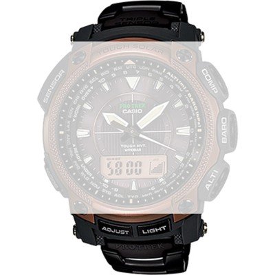 Dieses Casio Uhrarmband ist aus titan gefertigt und wird mit schrauben an der Uhr befestigt. Das Band hat eine Breite von 22 mm und wird mit einer sicherheitsfaltschließe geschlossen. Das Uhrenarmband hat keine gerade Halterung, was bedeutet, dass dieses Band nur für die unten aufgeführten Uhren geeignet ist.
