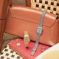Die Uhr ist sehr elegant. Sie sieht an meinem Handgelenk wunderschön aus. Viel mehr lebendig im wirklichen Leben als auf den Bildern. Leicht verstellbares Band erlaubt mir, es richtig zu passen. Sie ist klein, aber ich bin eine kleine Frau, also passt sie gut an mein Handgelenk. Sie ist leicht und bequem. Großer Fan.