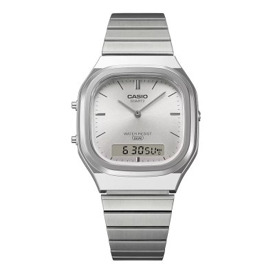 Diese Casio Uhr hat ein Kunststoff / Harz Gehäuse mit einem Durchmesser von 36 mm und ist mit einem Armband aus Edelstahl versehen. In der Uhr arbeitet ein Casio Uhrwerk. Das Glas der Uhr besteht aus Acryl - Glas.