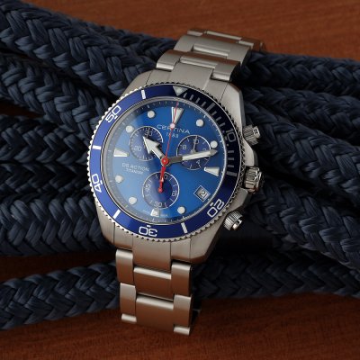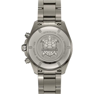 Diese Certina Uhr hat ein Titan Gehäuse mit einem Durchmesser von 42 mm und ist mit einem Armband aus Titan versehen. In der Uhr arbeitet ein ETA Uhrwerk. Das Glas der Uhr besteht aus Einfaches reflektionsfreies Saphirglas - Glas.