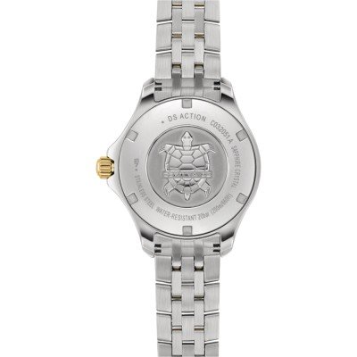 Diese Certina Uhr hat ein Edelstahl Gehäuse mit einem Durchmesser von 33.8 mm und ist mit einem Armband aus Edelstahl versehen. In der Uhr arbeitet ein ETA Uhrwerk. Das Glas der Uhr besteht aus Einfaches reflektionsfreies Saphirglas - Glas.