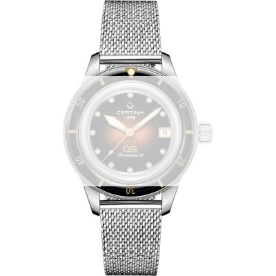 Dieses Certina Uhrarmband ist aus edelstahl gefertigt und wird mit druckstifte an der Uhr befestigt. Das Band hat eine Breite von 18 mm und wird mit einer schmetterlingsschließe mit druckknöpfen geschlossen. Das Band hat eine gerade Halterung, was bedeutet, dass dieses Band für alle Certinauhren mit einer geraden Halterung geeignet ist.