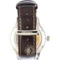Diese Chaperon Uhr hat ein Edelstahl Gehäuse mit einem Durchmesser von 40.5 mm und ist mit einem Armband aus Leder versehen. In der Uhr arbeitet ein Seiko Uhrwerk. Das Glas der Uhr besteht aus Hardlex Glas - Glas.