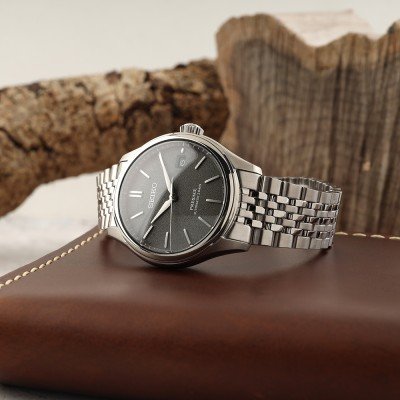Die Uhren der neuen Seiko Presage Classic Serie haben reich strukturierte, gewölbte Zifferblätter, die von der weichen und geschmeidigen Haptik natürlicher Textilien inspiriert sind, deren Verwendung in der japanischen Kultur verankert ist. Die Serie bietet zwei verschiedene Zifferblattkonfigurationen und Funktionsgruppen. Mit ihrer Wölbung und den komplexen Strukturmustern fangen die Zifferblätter das Umgebungslicht ein und reflektieren es, wodurch ein Gefühl von Tiefe und Schönheit entsteht. Die Oberseiten der Indexe sind gewölbt und passen sich der runden Form der Zifferblätter an, während sich der Minuten- und Sekundenzeiger sanft in Richtung der Markierungen wölbt. Ein neu entwickeltes, mehrreihiges Armband, dessen Design von den 1970er Jahren inspiriert ist, sorgt für ein zartes und angenehmes Tragegefühl am Handgelenk. Die Farbpalette der Serie umfasst Shiroiro, die Farbe von ungebleichtem Naturstoff, die zwei Zifferblätter der Kollektion inspiriert; Sensaicha, ein gedämpftes Grünbraun, das in der Edo-Zeit in Mode war; Araigaki, eine gewaschene und gebleichte Kaki-Farbe; und Sumiiro, ein graues Schwarz, das ursprünglich für die Kleidung von Mönchen verwendet wurde.