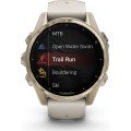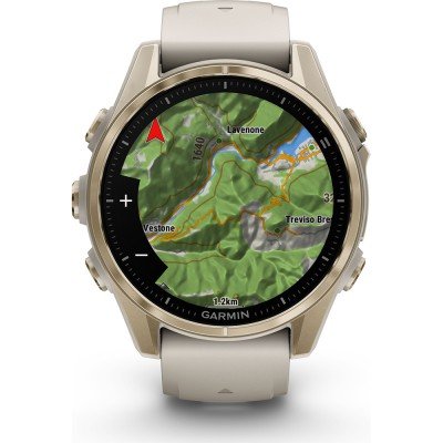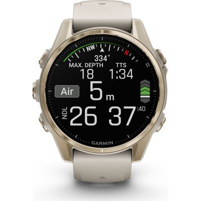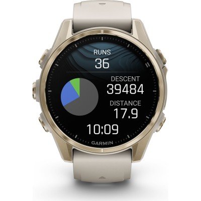 Die Garmin Fenix 8 ist eine hochwertige Multisport-Smartwatch, die speziell für Sportler, Outdoor-Abenteurer und Sport- sowie Outdoor-Enthusiasten entwickelt wurde. Sie bietet ein ideales Gleichgewicht zwischen Leistung, Akkulaufzeit und Konnektivität. Das Modell verfügt über fortschrittliche, personalisierte Trainingsfunktionen mit über 30 Sportmodi, darunter Laufen, Radfahren, Schwimmen, Skifahren, Tauchen bis zu einer Tiefe von 40 m, Yoga, HIIT und sportartspezifische 4- bis 6-Wochen-Pläne. Mithilfe dieser Funktionen können Belastung, Erholung und Leistungsqualität überwacht werden. Mit dieser Smartwatch ist es einfach, VO₂ max, Bodenkontaktzeit, Schrittlänge und tägliche Vorschläge zur Optimierung des Trainings zu überwachen. Navigation und GPS sind im Lieferumfang enthalten. Es verfügt über Multi-Band-GPS mit SatIQ™ sowie vorinstallierte TopoActive-Karten mit NextFork™-Führer für Ausflüge und Routen. Mit dieser Garmin können Sie Hin- und Rückfahrtrouten auf der Grundlage von Entfernung oder Zeit mit Dynamic Round-Trip Routing planen. Es verfügt über Garmin Pay für kontaktlose Zahlungen, Offline-Musik sowie Unterstützung für Spotify, Deezer und Amazon Music. Dieses Modell bietet eine Gesundheits- und Wellness-Überwachung mit Pulsoximetrie, Body-Battery™-Funktion, Schlafqualitätsmessung und Nickerchenüberwachung. Darüber hinaus verfügt es über einen HRV-Status, eine Jetlag-Anleitung und einen verbesserten Schlafcoach. Die Uhr ist bis zu einer Tiefe von 100 Metern wasserdicht, verfügt über auslaufsichere Metallknöpfe zum Tauchen und eine integrierte LED-Taschenlampe mit rotem Sicherheitslicht. Zudem ist eine Synchronisation mit der Laufkadenz möglich. Über den Garmin-Messenger ist Offline-Kommunikation im Erkundungsmodus möglich. Die Akkulaufzeit beträgt in der AMOLED-Version bis zu 29 Tage im Smartwatch-Modus. Die Solarversion hingegen hält mit dem Akku bis zu 48 Tage im Smartwatch-Modus und bis zu 92 Stunden im GPS-Modus durch. Mit dieser Uhr können Tauchgänge, Tiefe, Sinkgeschwindigkeit und Entsättigungsstopps bis zu einer Tiefe von 40 Metern überwacht werden. Sie verfügt über ein eingebautes Mikrofon und einen Lautsprecher, sodass Anrufe getätigt und Sprachbefehle direkt vom Handgelenk aus verwendet werden können.