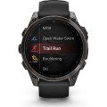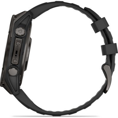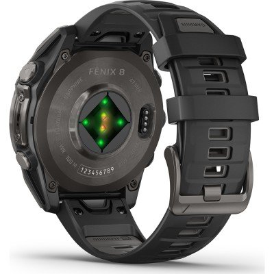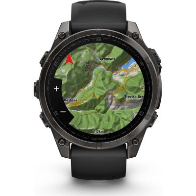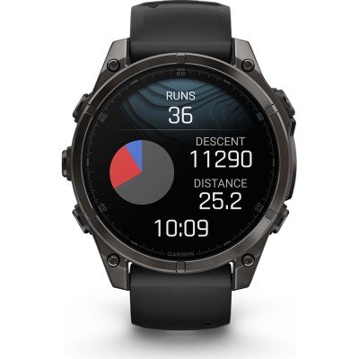 Die Garmin Fenix 8 ist eine hochwertige Multisport-Smartwatch, die speziell für Sportler, Outdoor-Abenteurer und Sport- sowie Outdoor-Enthusiasten entwickelt wurde. Sie bietet ein ideales Gleichgewicht zwischen Leistung, Akkulaufzeit und Konnektivität. Das Modell verfügt über fortschrittliche, personalisierte Trainingsfunktionen mit über 30 Sportmodi, darunter Laufen, Radfahren, Schwimmen, Skifahren, Tauchen bis zu einer Tiefe von 40 m, Yoga, HIIT und sportartspezifische 4- bis 6-Wochen-Pläne. Mithilfe dieser Funktionen können Belastung, Erholung und Leistungsqualität überwacht werden. Mit dieser Smartwatch ist es einfach, VO₂ max, Bodenkontaktzeit, Schrittlänge und tägliche Vorschläge zur Optimierung des Trainings zu überwachen. Navigation und GPS sind im Lieferumfang enthalten. Es verfügt über Multi-Band-GPS mit SatIQ™ sowie vorinstallierte TopoActive-Karten mit NextFork™-Führer für Ausflüge und Routen. Mit dieser Garmin können Sie Hin- und Rückfahrtrouten auf der Grundlage von Entfernung oder Zeit mit Dynamic Round-Trip Routing planen. Es verfügt über Garmin Pay für kontaktlose Zahlungen, Offline-Musik sowie Unterstützung für Spotify, Deezer und Amazon Music. Dieses Modell bietet eine Gesundheits- und Wellness-Überwachung mit Pulsoximetrie, Body-Battery™-Funktion, Schlafqualitätsmessung und Nickerchenüberwachung. Darüber hinaus verfügt es über einen HRV-Status, eine Jetlag-Anleitung und einen verbesserten Schlafcoach. Die Uhr ist bis zu einer Tiefe von 100 Metern wasserdicht, verfügt über auslaufsichere Metallknöpfe zum Tauchen und eine integrierte LED-Taschenlampe mit rotem Sicherheitslicht. Zudem ist eine Synchronisation mit der Laufkadenz möglich. Über den Garmin-Messenger ist Offline-Kommunikation im Erkundungsmodus möglich. Die Akkulaufzeit beträgt in der AMOLED-Version bis zu 29 Tage im Smartwatch-Modus. Die Solarversion hingegen hält mit dem Akku bis zu 48 Tage im Smartwatch-Modus und bis zu 92 Stunden im GPS-Modus durch. Mit dieser Uhr können Tauchgänge, Tiefe, Sinkgeschwindigkeit und Entsättigungsstopps bis zu einer Tiefe von 40 Metern überwacht werden. Sie verfügt über ein eingebautes Mikrofon und einen Lautsprecher, sodass Anrufe getätigt und Sprachbefehle direkt vom Handgelenk aus verwendet werden können.