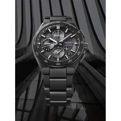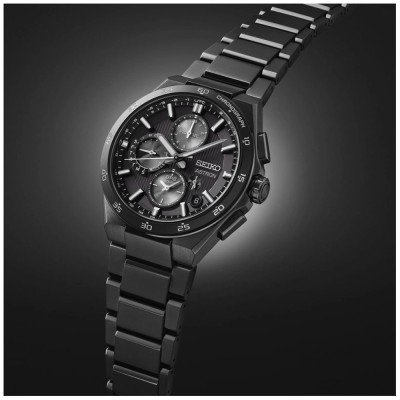 Diese Seiko Astron gehört zur ersten Serie von Astron GPS Solar Uhren, die die Dual-Time-Technologie mit einer Chronographenfunktion kombinieren. Dank des Kalibers 5X83 ist dies auch die erste Seiko Astron mit einem Hilfszifferblatt bei 12 Uhr, das dem Hauptzifferblatt und den Hilfszifferblättern kontrastierende Farben und Texturen verleiht und so für eine dynamischere und sportlichere Präsenz sorgt. Dieses Hilfszifferblatt misst die verstrichene Zeit in 1/20-Sekunden-Schritten, während die auf dem Hauptzifferblatt angezeigte Uhrzeit mit der auf dem Hilfszifferblatt bei 6 Uhr vertauscht werden kann, indem zwei Knöpfe drei Sekunden lang gedrückt werden. Die Uhren verfügen über eine zweiteilige Lünette mit einem Oberteil aus Keramik auf einem Titanrahmen. Aufgrund des niedrigen Schwerpunkts des Titangehäuses tragen sich die Uhren sehr angenehm am Handgelenk.