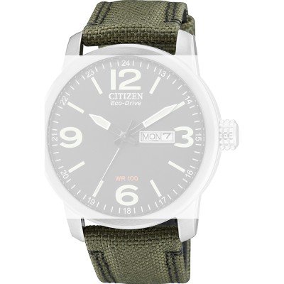 Dieses Citizen Uhrarmband ist aus textil gefertigt und wird mit druckstifte an der Uhr befestigt. Das Band hat eine Breite von 22 mm und wird mit einer dornschließe geschlossen. Das Band hat eine gerade Halterung, was bedeutet, dass dieses Band für alle Citizenuhren mit einer geraden Halterung geeignet ist.