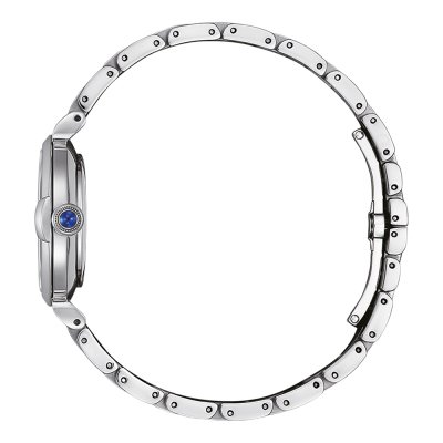 Diese Citizen Uhr hat ein Edelstahl Gehäuse mit einem Durchmesser von 29.5 mm und ist mit einem Armband aus Edelstahl versehen. In der Uhr arbeitet ein Citizen Uhrwerk. Das Glas der Uhr besteht aus Sapphir - Glas.