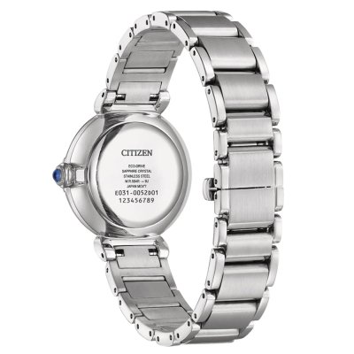 Diese Citizen Uhr hat ein Edelstahl Gehäuse mit einem Durchmesser von 29.5 mm und ist mit einem Armband aus Edelstahl versehen. In der Uhr arbeitet ein Citizen Uhrwerk. Das Glas der Uhr besteht aus Sapphir - Glas.