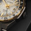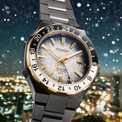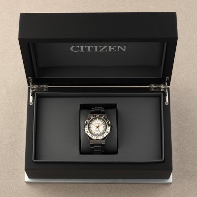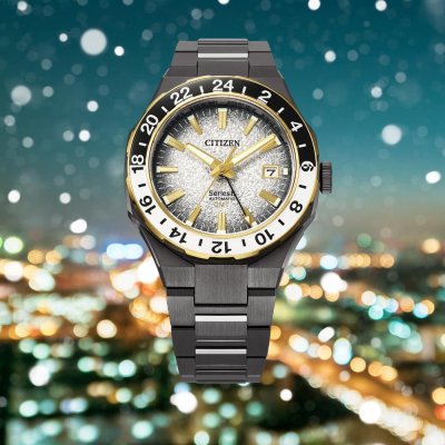 Diese auf 1600 Exemplare limitierte mechanische GMT-Uhr ist Teil der hochgeschätzten Citizen Serie 8. Sie verfügt über ein Uhrwerk des Kalibers 9054, eine 24-Stunden-Anzeige, einen GMT-Zeiger, eine Datumsfunktion und einen antimagnetischen Schutz. Mit einer Wasserdichtigkeit von bis zu 10 bar, einer Gangreserve von 50 Stunden und einer Ganggenauigkeit von -10/+20 Sekunden pro Tag besticht diese Uhr der Serie 8 sowohl durch ihre Funktionalität als auch durch ihre edle Optik. Das dunkelgraue Edelstahlgehäuse mit entspiegeltem Saphirglas, 24-Stunden-Lünette und strukturiertem Verlaufszifferblatt bietet nicht nur Robustheit, sondern verleiht ihr auch Stil. Eine seriöse Uhr mit einem hohen Maß an Funktionalität und Eleganz, die sich sowohl für ein geschäftliches als auch für ein legeres Umfeld eignet.