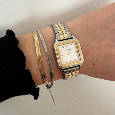 Diese Cluse Uhr hat ein Edelstahl Gehäuse mit einem Durchmesser von 24 mm und ist mit einem Armband aus Edelstahl versehen. In der Uhr arbeitet ein Seiko Instruments Inc. Uhrwerk. Das Glas der Uhr besteht aus Mineral - Glas.