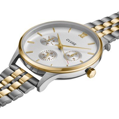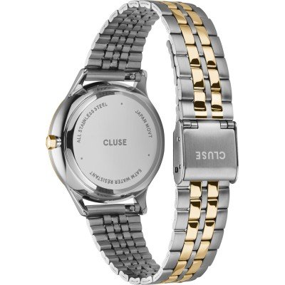 Diese Cluse Uhr hat ein Edelstahl Gehäuse mit einem Durchmesser von 34 mm und ist mit einem Armband aus Edelstahl versehen. In der Uhr arbeitet ein Seiko Instruments Inc. Uhrwerk. Das Glas der Uhr besteht aus Mineral - Glas.