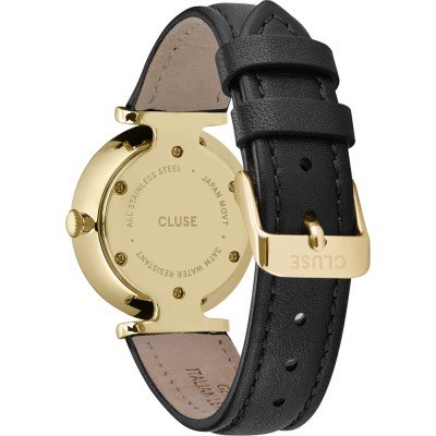 Diese Cluse Uhr hat ein Edelstahl Gehäuse mit einem Durchmesser von 33 mm und ist mit einem Armband aus Leder versehen. In der Uhr arbeitet ein Miyota Uhrwerk. Das Glas der Uhr besteht aus Mineral - Glas.