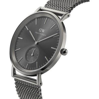 Diese Daniel Wellington Uhr hat ein Edelstahl Gehäuse mit einem Durchmesser von 40 mm und ist mit einem Armband aus Edelstahl versehen.