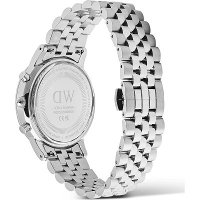 Diese Daniel Wellington Uhr hat ein Edelstahl Gehäuse mit einem Durchmesser von 42 mm und ist mit einem Armband aus Edelstahl versehen.