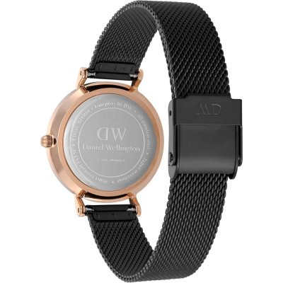 Diese Daniel Wellington Uhr hat ein Edelstahl Gehäuse mit einem Durchmesser von 28 mm und ist mit einem Armband aus Edelstahl versehen. In der Uhr arbeitet ein Miyota Uhrwerk. Das Glas der Uhr besteht aus Mineral - Glas.