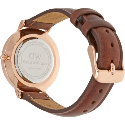 Diese Daniel Wellington Uhr hat ein Edelstahl Gehäuse mit einem Durchmesser von 32 mm und ist mit einem Armband aus Leder versehen. In der Uhr arbeitet ein Miyota Uhrwerk. Das Glas der Uhr besteht aus Mineral - Glas.