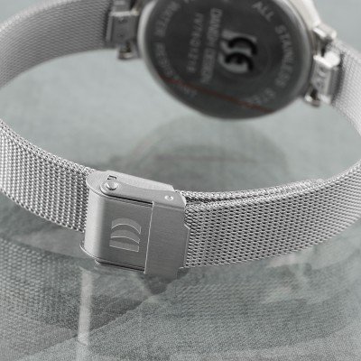 Diese Danish Design Uhr hat ein Edelstahl Gehäuse mit einem Durchmesser von 33 mm und ist mit einem Armband aus Edelstahl versehen. In der Uhr arbeitet ein Seiko Instruments Inc. Uhrwerk. Das Glas der Uhr besteht aus Mineral - Glas.