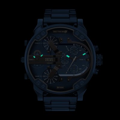 Diese Diesel Uhr hat ein Edelstahl Gehäuse mit einem Durchmesser von 57 mm und ist mit einem Armband aus Edelstahl versehen. In der Uhr arbeitet ein Ronda Uhrwerk. Das Glas der Uhr besteht aus Mineral - Glas.