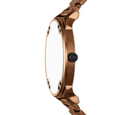 Diese Diesel Uhr hat ein Edelstahl Gehäuse mit einem Durchmesser von 54 mm und ist mit einem Armband aus Edelstahl versehen. In der Uhr arbeitet ein Miyota Uhrwerk. Das Glas der Uhr besteht aus Mineral - Glas.
