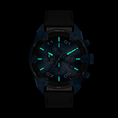 Diese Diesel Uhr hat ein Edelstahl Gehäuse mit einem Durchmesser von 49 mm und ist mit einem Armband aus Leder versehen. In der Uhr arbeitet ein Seiko Instruments Inc. Uhrwerk. Das Glas der Uhr besteht aus Mineral - Glas.