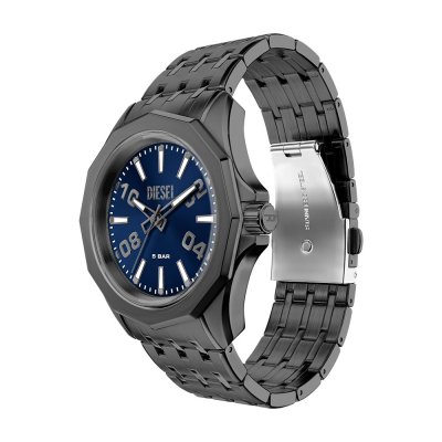 Diese Diesel Uhr hat ein Edelstahl Gehäuse mit einem Durchmesser von 44 mm und ist mit einem Armband aus Edelstahl versehen. In der Uhr arbeitet ein Miyota Uhrwerk. Das Glas der Uhr besteht aus Mineral - Glas.