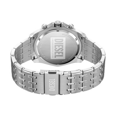 Diese Diesel Uhr hat ein Edelstahl Gehäuse mit einem Durchmesser von 46 mm und ist mit einem Armband aus Edelstahl versehen. In der Uhr arbeitet ein Seiko Instruments Inc. Uhrwerk. Das Glas der Uhr besteht aus Mineral - Glas.