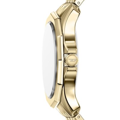 Diese Diesel Uhr hat ein Edelstahl Gehäuse mit einem Durchmesser von 44 mm und ist mit einem Armband aus Edelstahl versehen. In der Uhr arbeitet ein Miyota Uhrwerk. Das Glas der Uhr besteht aus Mineral - Glas.