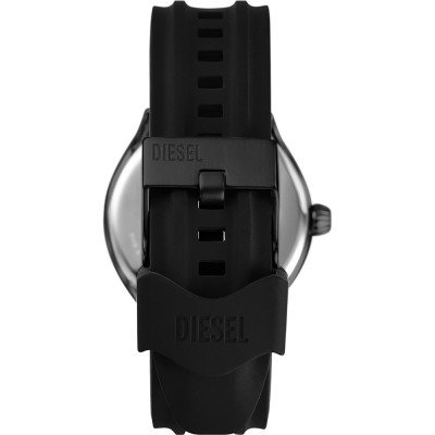 Diese Diesel Uhr hat ein Edelstahl Gehäuse mit einem Durchmesser von 44 mm und ist mit einem Armband aus Kautschuk versehen. In der Uhr arbeitet ein Miyota Uhrwerk. Das Glas der Uhr besteht aus Mineral - Glas.