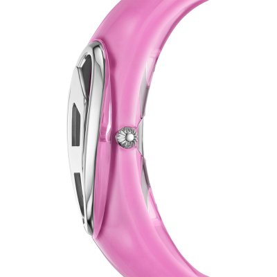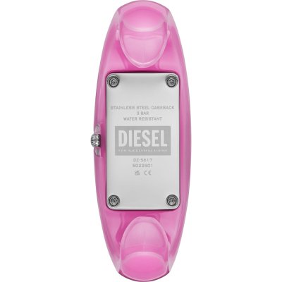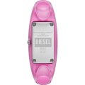 Diese Diesel Uhr hat ein Kunstharz Gehäuse mit einem Durchmesser von 24 mm und ist mit einem Armband aus Kunstharz versehen. In der Uhr arbeitet ein Seiko Instruments Inc. Uhrwerk. Das Glas der Uhr besteht aus Mineral - Glas.