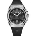Diese Edox Uhr hat ein Edelstahl Gehäuse mit einem Durchmesser von 43 mm und ist mit einem Armband aus Kautschuk versehen. In der Uhr arbeitet ein Ronda Uhrwerk. Das Glas der Uhr besteht aus Sapphir - Glas.