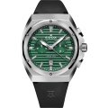 Diese Edox Uhr hat ein Edelstahl Gehäuse mit einem Durchmesser von 43 mm und ist mit einem Armband aus Kautschuk versehen. In der Uhr arbeitet ein Ronda Uhrwerk. Das Glas der Uhr besteht aus Sapphir - Glas.