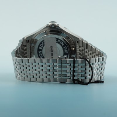 Diese Edox Uhr hat ein Edelstahl Gehäuse mit einem Durchmesser von 43 mm und ist mit einem Armband aus Metall versehen. In der Uhr arbeitet ein Ronda Uhrwerk. Das Glas der Uhr besteht aus Sapphir - Glas.