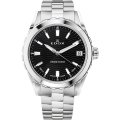 Diese Edox Uhr hat ein Edelstahl Gehäuse mit einem Durchmesser von 33 mm und ist mit einem Armband aus Edelstahl versehen. In der Uhr arbeitet ein Ronda Uhrwerk. Das Glas der Uhr besteht aus Sapphir - Glas.