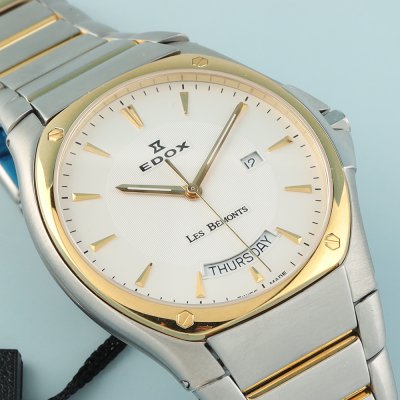 Diese Edox Uhr hat ein Edelstahl Gehäuse mit einem Durchmesser von 39 mm und ist mit einem Armband aus Metall versehen. In der Uhr arbeitet ein Ronda Uhrwerk. Das Glas der Uhr besteht aus Sapphir - Glas.