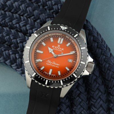 Der Spitzname von Edox lautet schon seit langem "der Wasser-Champion". In diesem Sinne wurde die Skydiver Neptunian Serie entwickelt. Sie ist die ultimative klassische Taucheruhr mit einer erstaunlichen Wasserdichtigkeit von 1000 m! Sie ist eine komfortable, moderne Uhr mit einem Swiss Made Automatikwerk Edox Cal. 80 (basierend auf dem Sellita SW200), Saphirglas mit einer AR-Beschichtung und erhältlich mit Kautschuk- oder Stahlarmband und in verschiedenen Farben. Auf dem Gehäuseboden ist der römische Meeresgott Neptunus eingeprägt, was die außergewöhnliche Tauchtauglichkeit der Skydiver Neptunian zusätzlich unterstreicht.