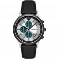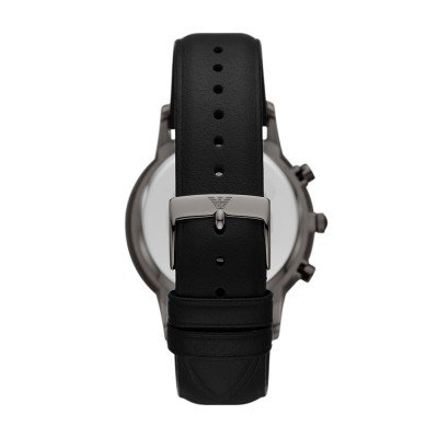 Diese Emporio Armani Uhr hat ein Edelstahl Gehäuse mit einem Durchmesser von 43 mm und ist mit einem Armband aus Leder versehen. In der Uhr arbeitet ein Miyota Uhrwerk. Das Glas der Uhr besteht aus Mineral - Glas.